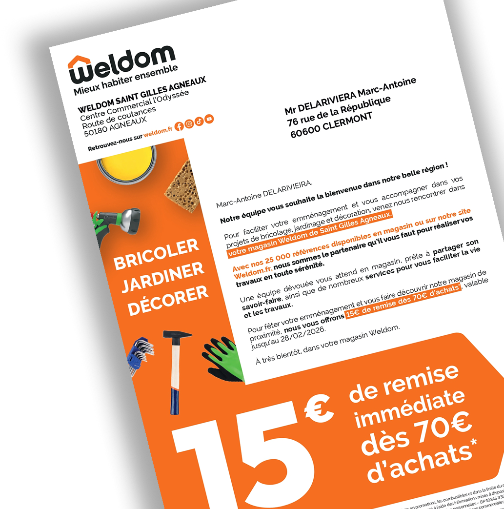 Grâce à l’envoi automatique d’un courrier de bienvenue à chaque nouvel emménagé, faites de votre magasin la première référence bricolage pour les nouveaux habitants de votre secteur.